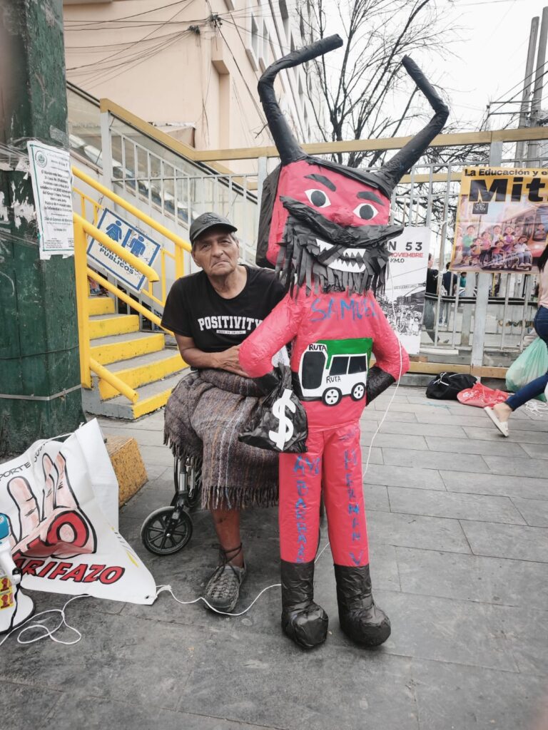 A palos contra piñata de Samuel, usuarios del transporte demuestran su inconformidad por la carestía y deficiencia del servicio