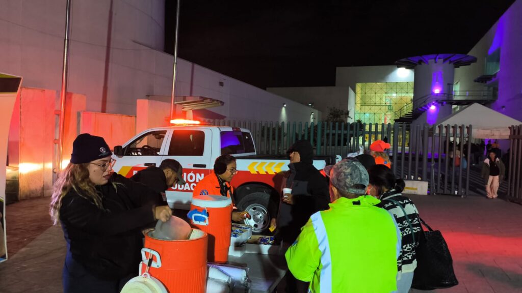 El operativo se realizó en las inmediaciones del Hospital General de Zona del IMSS número 67, donde personal de Protección Civil brindó atención principalmente a familiares de pacientes y ciudadanos que permanecen al exterior del nosocomio durante la noche y madrugada.